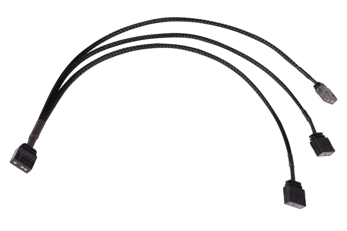 Ein hochwertig gesleevtes aRGB 3-Pin auf 3x 3-Pin Y-Splitter Kabel. Kompatibel zu allen Alphacool aRGB Produkten sowie den meisten Mainboards und aRGB-Controllern. Mit diesem Y-Splitter können mehrere aRGB Elemente zusammengeführt werden.
