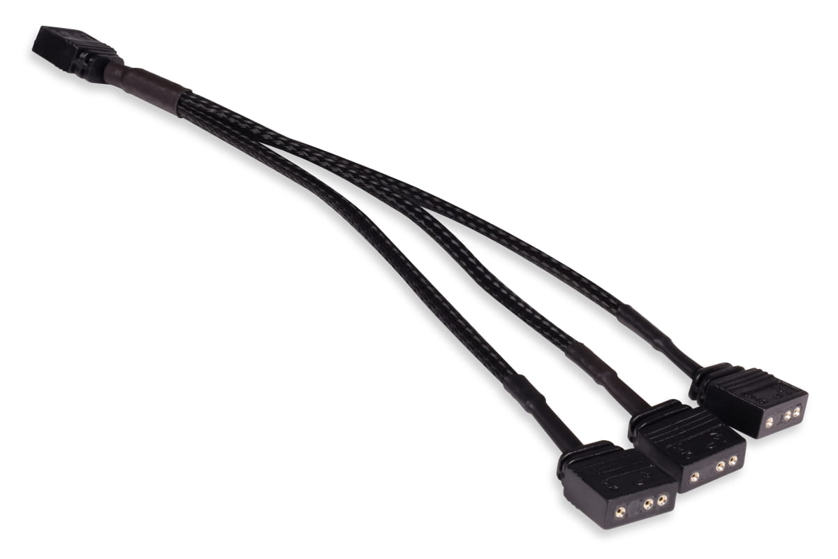 Ein hochwertig gesleevtes aRGB 3-Pin auf 3x 3-Pin Y-Splitter Kabel. Kompatibel zu allen Alphacool aRGB Produkten sowie den meisten Mainboards und aRGB-Controllern. Mit diesem Y-Splitter können mehrere aRGB Elemente zusammengeführt werden.