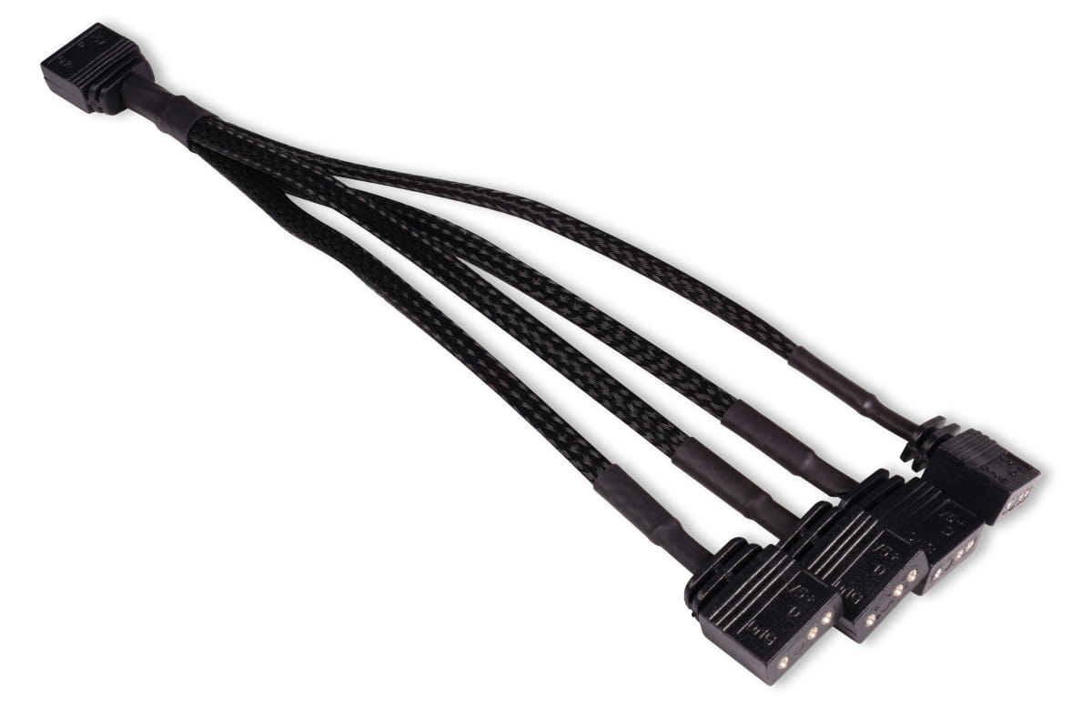 Ein hochwertig gesleevtes aRGB 3-Pin auf 4x 3-Pin Y-Splitter Kabel. Kompatibel zu allen Alphacool aRGB Produkten sowie den meisten Mainboards und aRGB-Controllern. Mit diesem Y-Splitter können mehrere aRGB Elemente zusammengeführt werden.