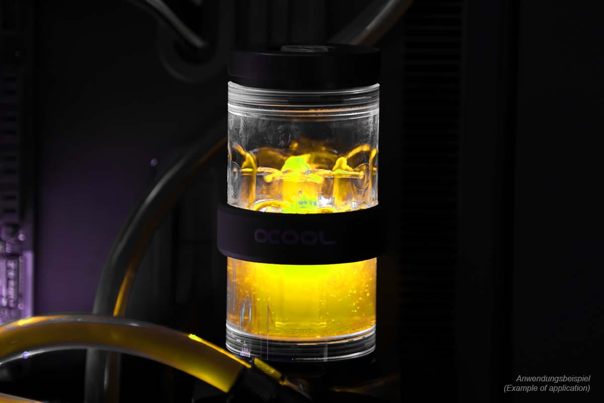 Wer seinem PC eine zusätzliche Portion Leuchtkraft verabreichen möchte, kann das Alphacool Eiswasser Crystal UV zum Einsatz bringen. Die UV-Reaktivität mit UV-LEDs oder Kathoden ist herausragend.