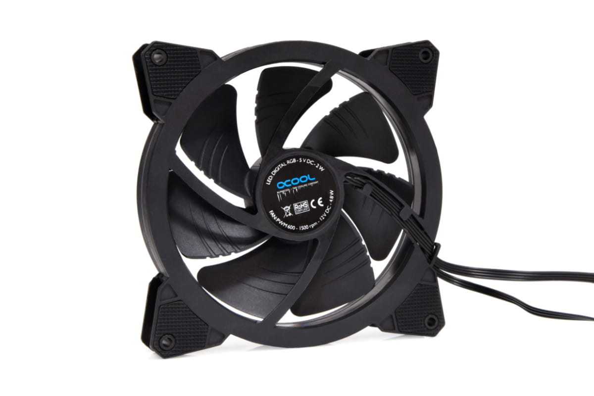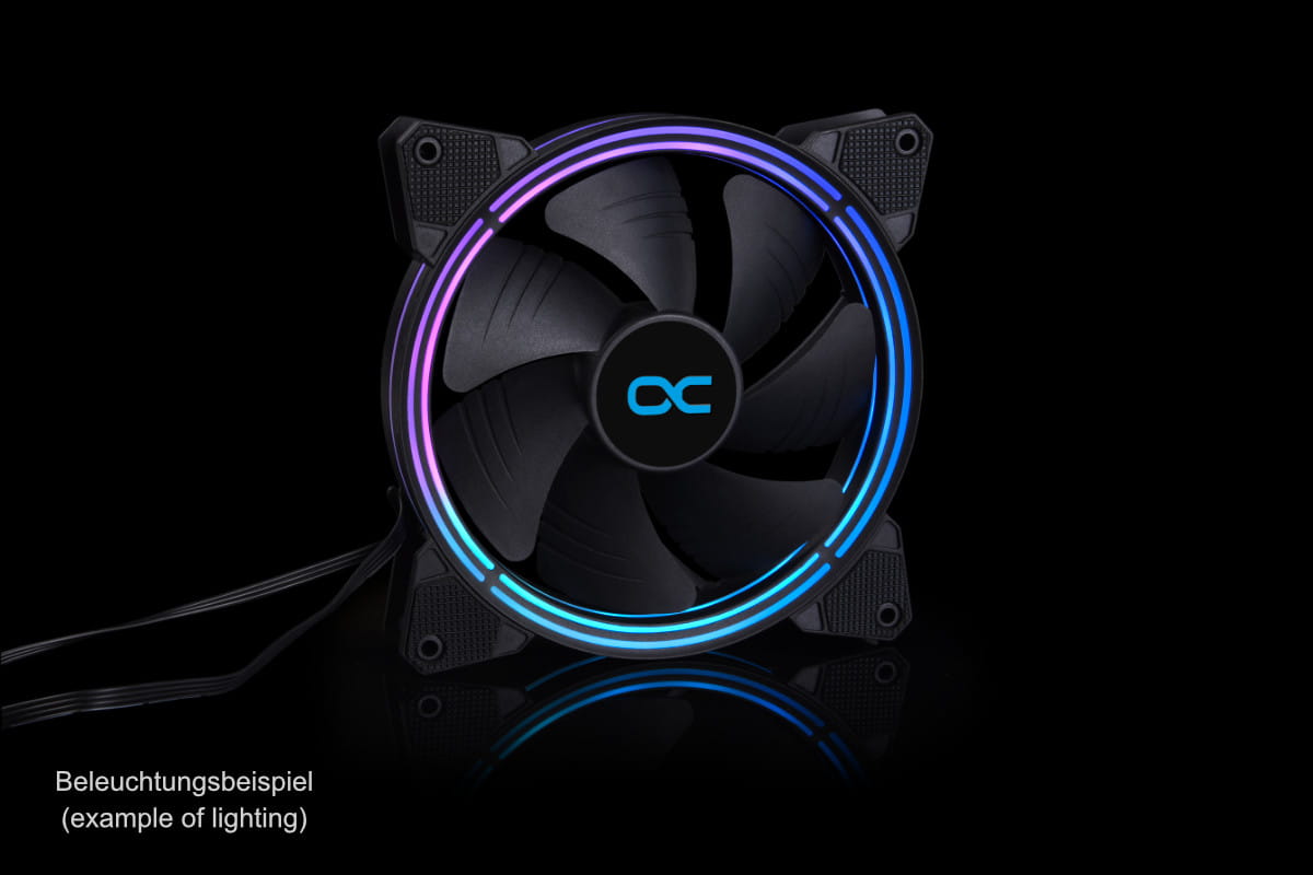 Der Alphacool Eiszyklon Aurora LUX Pro Lüfter wird auch auf der Alphacool Eisbaer Aurora Reihe verwendet und bietet neben einem weiten Regelbereich auch eine überragende Digitale RGB LED Beleuchtung an. Die einzeln steuerbaren 5V aRGB LEDs gepaart mit dem speziellen Design des Lüfterrahmens erzeugen einzigartige Effekte.