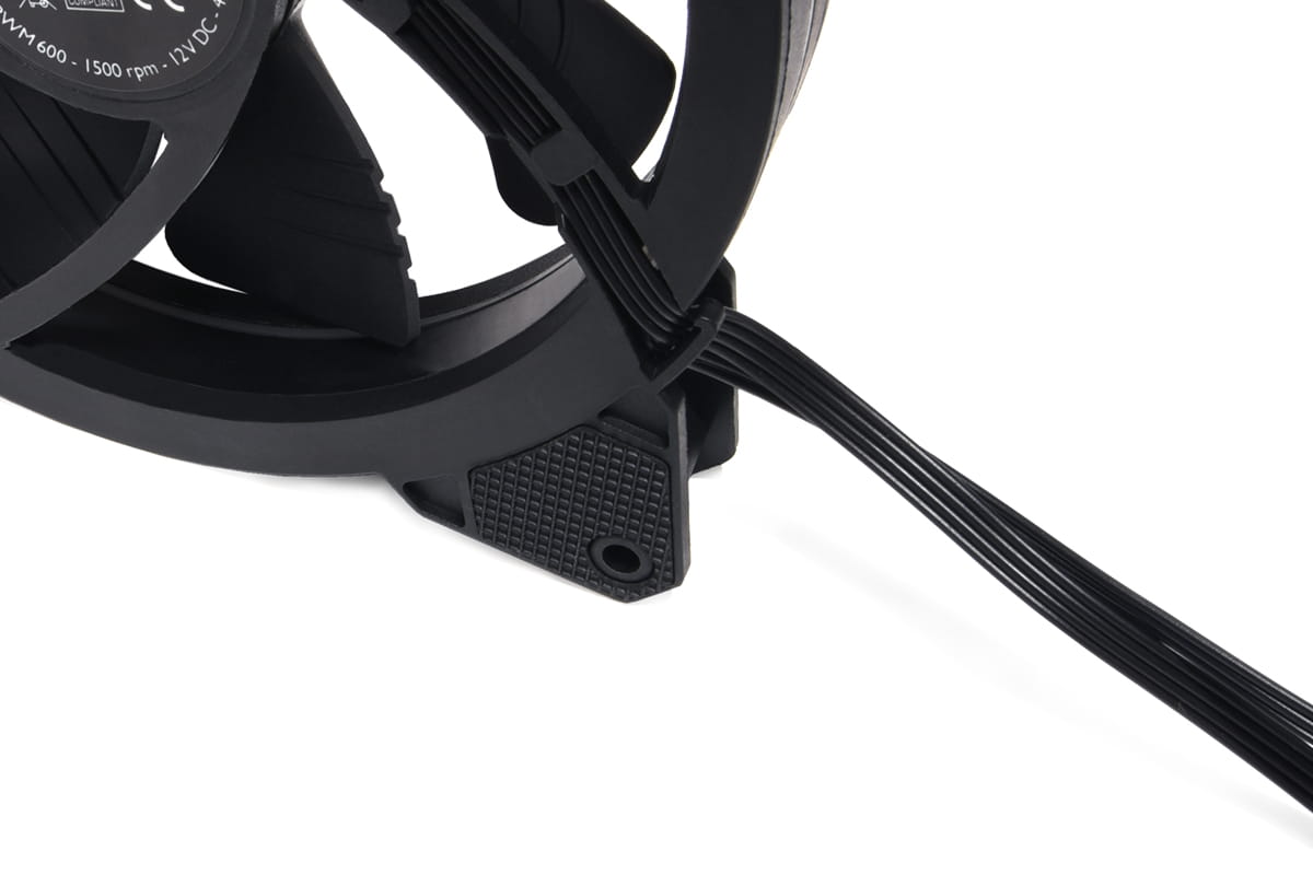 Über den 4-Pin PWM Anschluss kann der Lüfter von 600 bis 1500 rpm geregelt werden. Bei 600 rpm ist der Lüfter nahezu lautlos, bietet aber dennoch einen guten Luftdruchsatz gepaart mit einem hohen statischen Druck. Dadurch kann der Lüfter auch sehr gut auf Radiatoren einer Wasserkühlung eingesetzt werden. Dank des hohen Luftstromes eignet sich der Lüfter aber auch hervorragend für die Belüftung eines Gehäuses. Direkt am Rahmen sind zudem Entkoppler zu finden. Die weichen Schaumstoffpolster vermindern die Übertragung von Vibrationen an das Gehäuse. Ein weiterer Pluspunkt für die Silentfähigkeit des Lüfters.