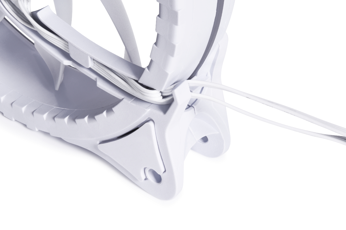 Über den 4-Pin PWM Anschluss kann der Lüfter von 0 bis 2500 U/min geregelt werden. Zusätzlich bietet er eine Zero-Ansteuerung, mit der der Lüfter auf 0 U/min herunter geregelt werden kann und dann mit ca. 350 U/min startet. Bei 800 U/min ist der Lüfter nahezu lautlos. Bei 2500 U/min ermöglicht er einen Luftdurchsatz von 118.9m³/h gepaart mit einem hohen statischen Druck von 3.17mm/H2O. Dadurch eignet sich der Lüfter perfekt für die Montage auf Radiatoren einer Wasserkühlung oder für die Belüftung eines Gehäuses. Direkt am Rahmen befinden sich Entkoppler. Die weichen Schaumstoffpolster vermindern die Übertragung von Vibrationen an das Gehäuse. Abrisskanten an den Lüfterblättern sorgen zusätzlich für eine erhebliche Minderung der Geräuschkulisse.