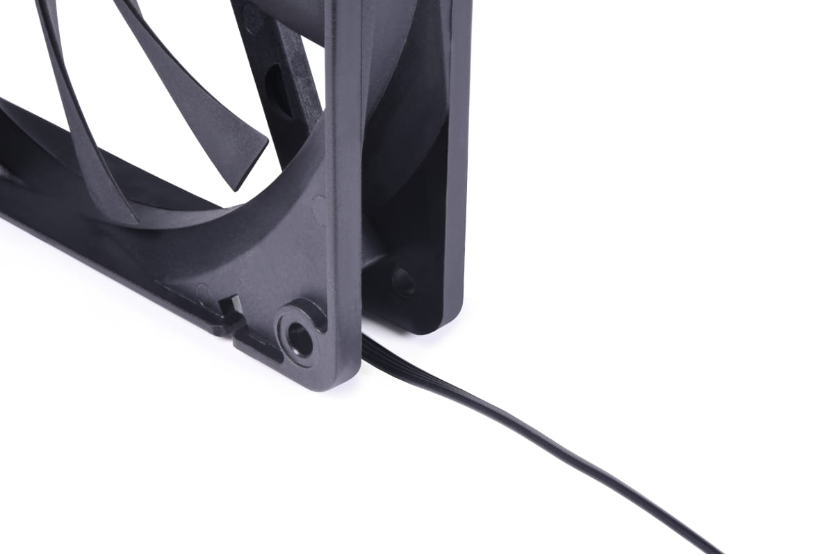 Über den 4-Pin PWM Anschluss kann der Lüfter von 0 bis 2000 U/min geregelt werden. Bei maximaler Drehzahl ermöglicht er einen Luftdurchsatz von 103.03 CFM gepaart mit einem hohen statischen Druck von 2.81 mm/H2O. Dadurch eignet sich der Lüfter perfekt für die Montage auf Radiatoren einer Wasserkühlung oder für die Belüftung eines Gehäuses.