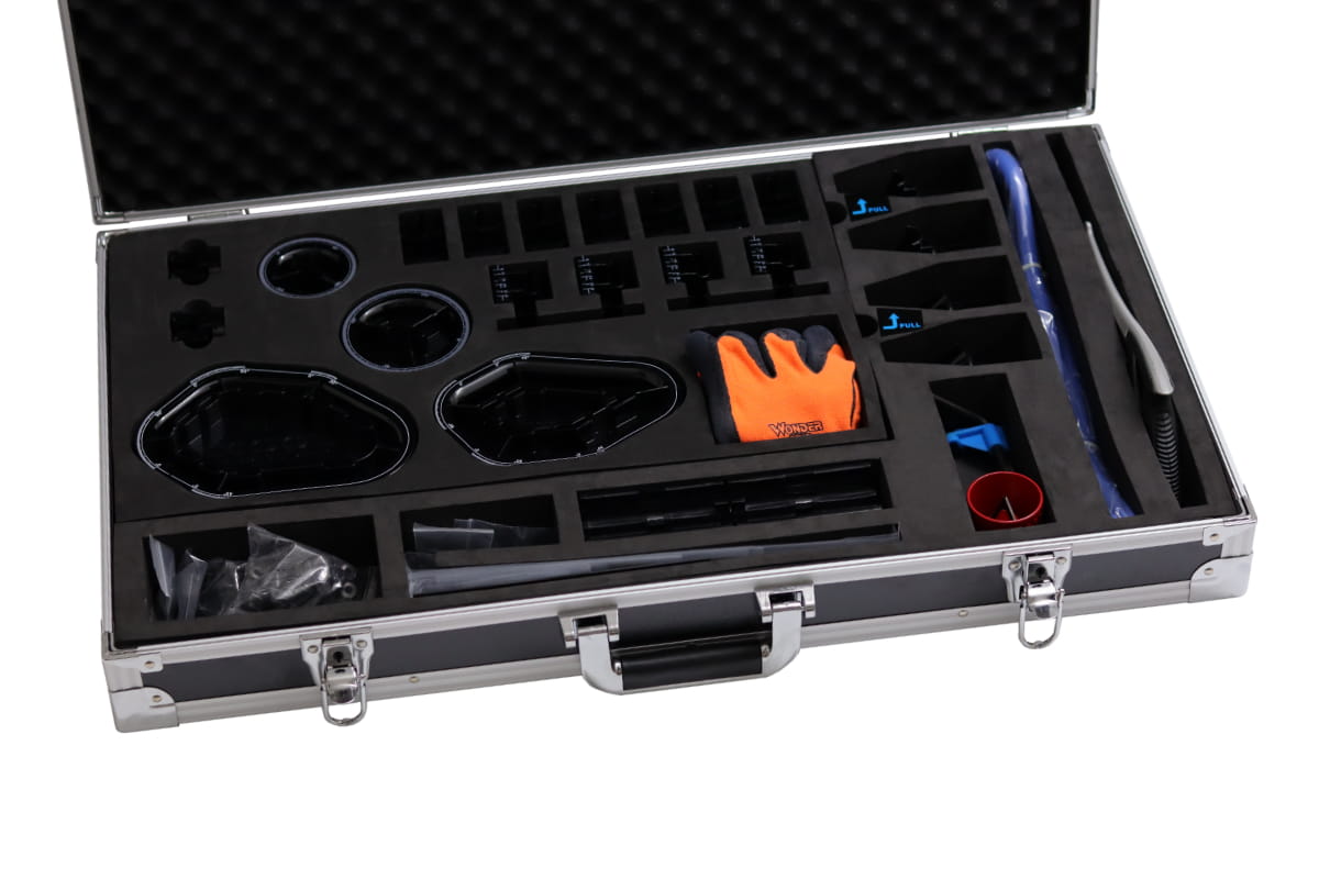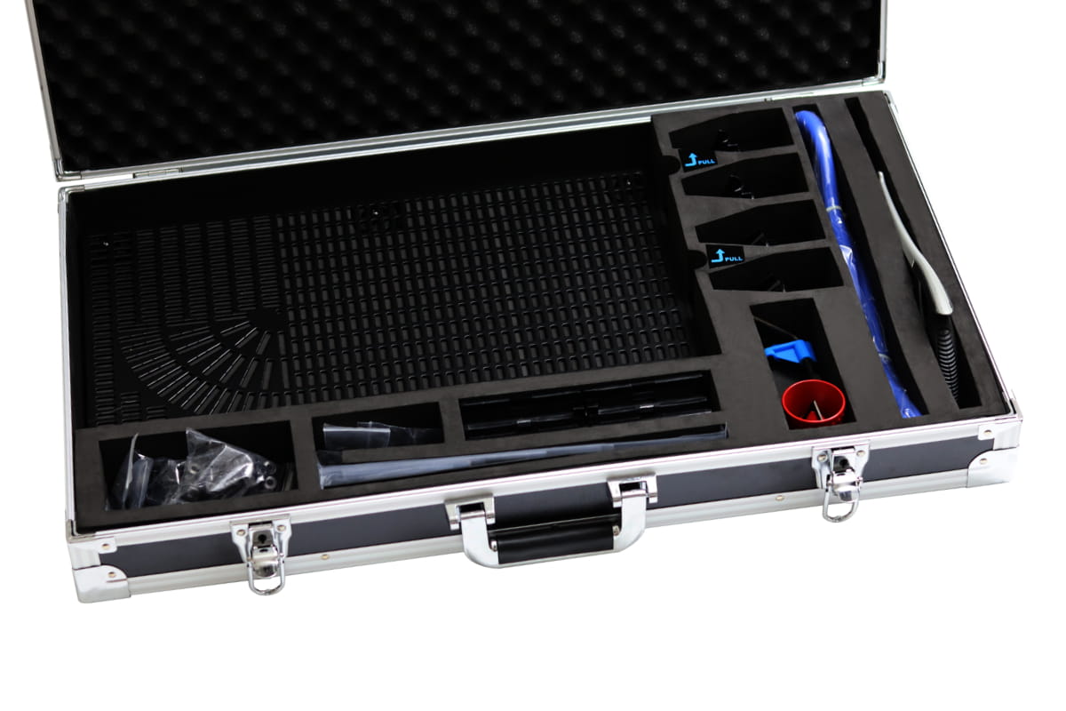 Der Alphacool Eiskoffer ist wohl die umfangreichste Sammlung an Werkzeugen um HardTubes, mit 13 oder 16mm Durchmesser, in nahezu jede Form zu biegen. In dem großen, edlen und stabilen Koffer haben alle Werkzeuge einen separaten Platz. Damit sind alle Teile übersichtlich sortiert und aufgeräumt untergebracht.