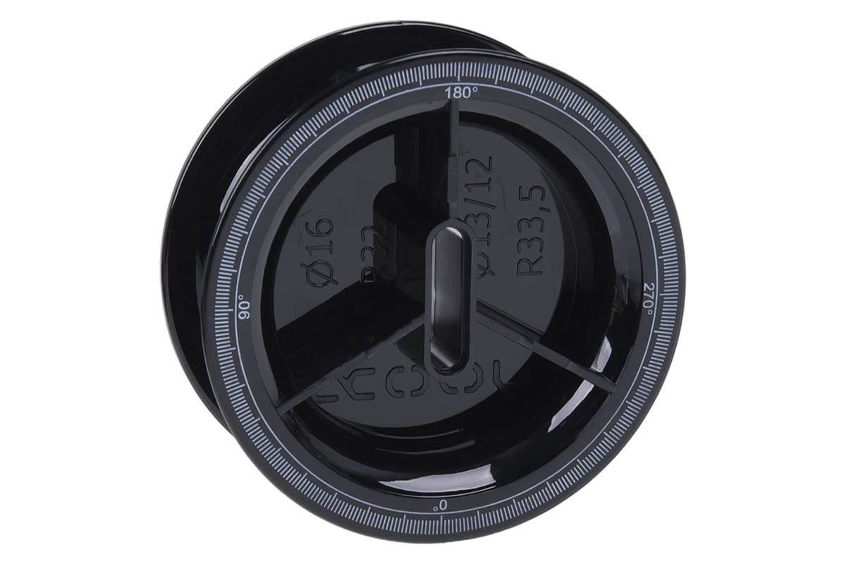 Rohre mit Ø 13 bzw. 12 mm werden um einen Radius von 33,5 mm gebogen, Rohre mit Ø 16 mm werden um einen Radius von 32 mm gebogen