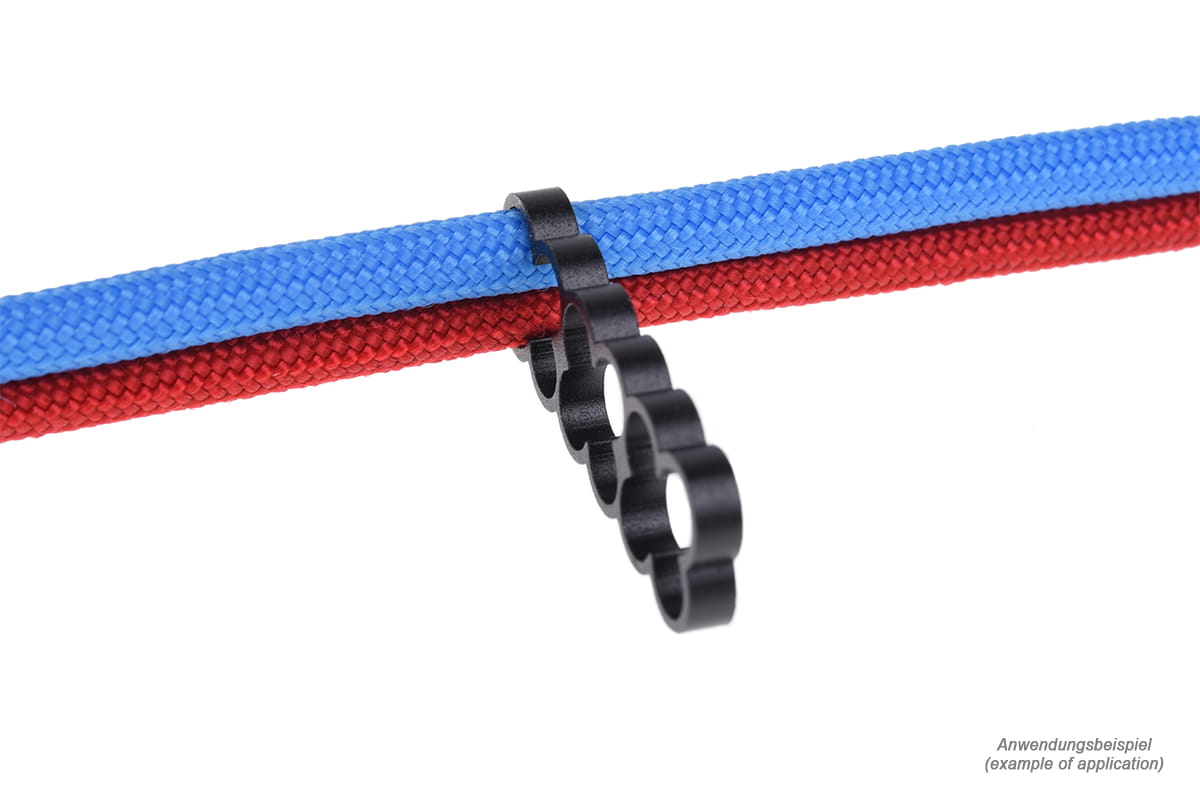 Der Alphacool Eiskamm Alu ist die optimale Lösung um seine Kabel sauber zu verlegen und die beste Optik zu erhalten. Die aus Aluminiumrohren geschnittenen Eiskämme sind wesentlich stabiler als Versionen aus Acryl. Um Schäden an dem Sleeve zu vermeiden werden alle Kanten abgerundet. Scharfe Kanten, die in das Sleeve schneiden könnten, sind damit Geschichte. Natürlich bietet Alphacool sämtliche Größen für jeden Kabeltyp an, von SATA Kabeln über 8-Pin bis hin zum 24-Pin ATX Kabel, inklusive unterschiedlicher Farben.