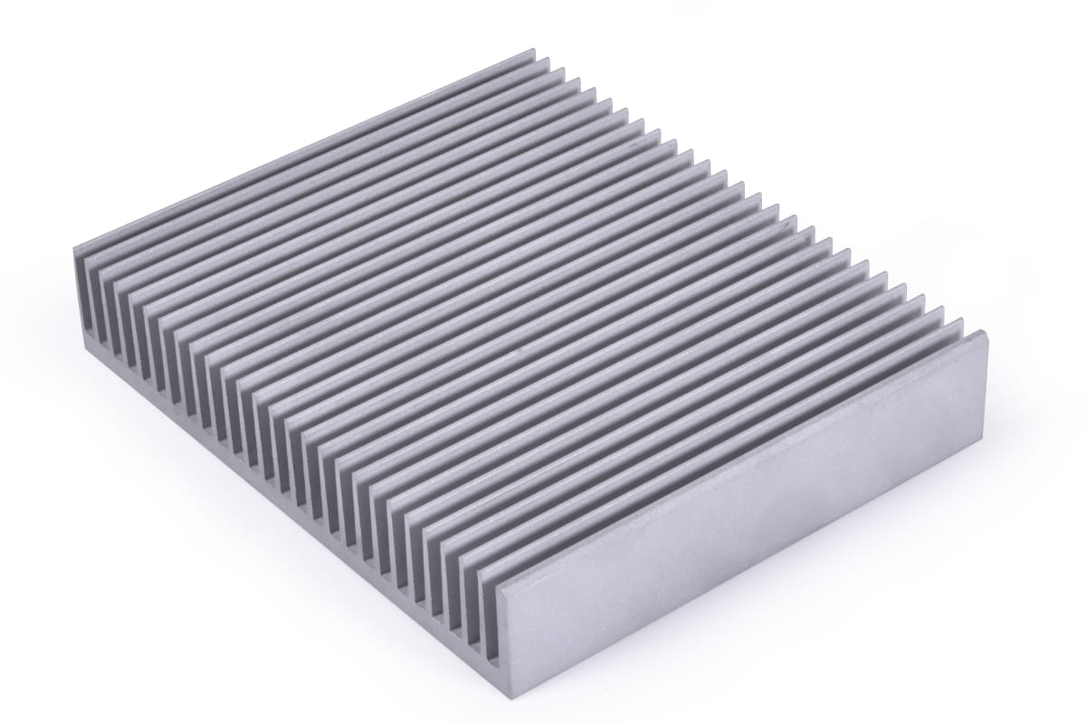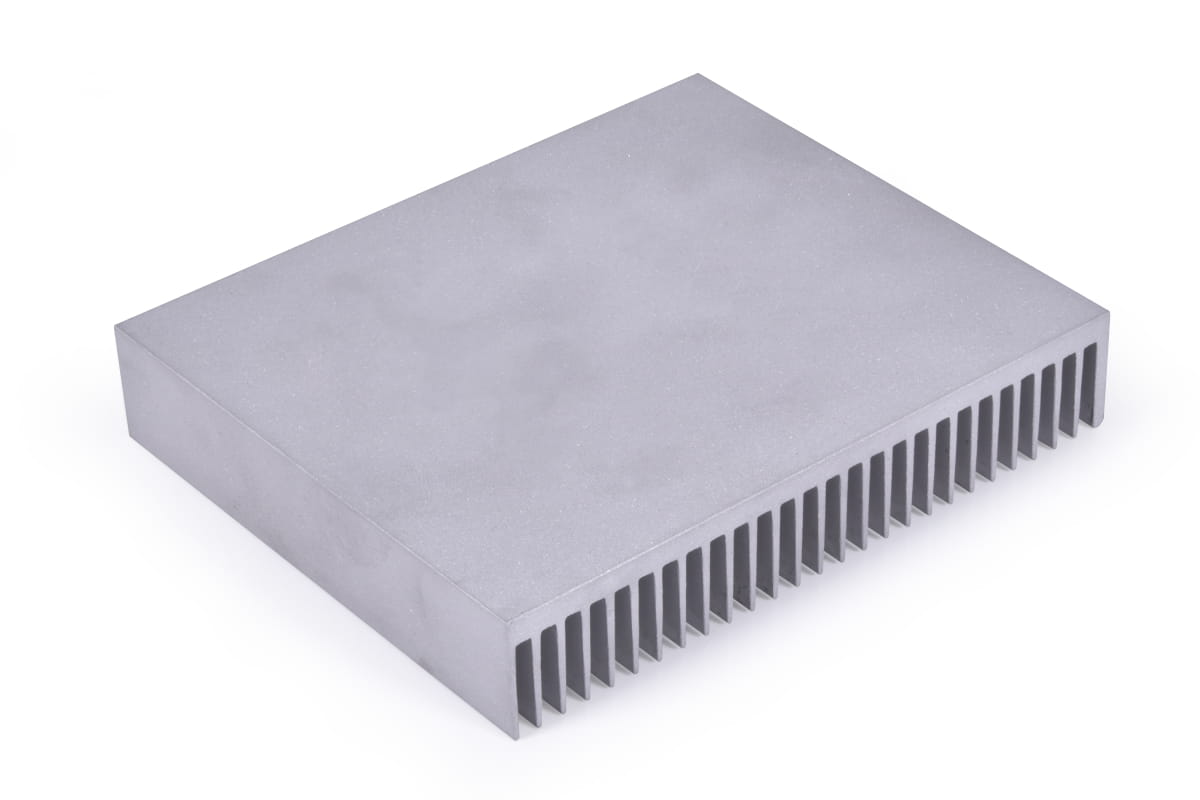 Spezieller Kühler aus Aluminium zur passiven Luftkühlung von elektronischen Bauteilen. Dieser Kühlertyp wird häufig für die Kühlung von Maschinen, elektrischen sowie elektronischen Geräten und Bauteilen verwendet. Durch diese Art von Kühlung reduziert sich das Risiko von Hardwareschäden aufgrund von Überhitzung.