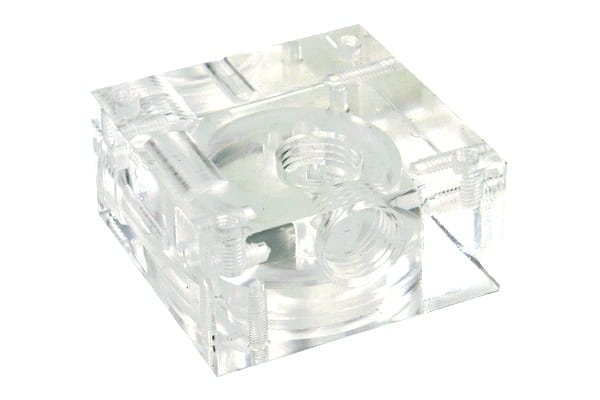 Dieser Aufsatz ist so designed, das er auf die Alphacool DC-LT-Pumpe montiert werden kann. Damit ist es möglich diese Minipumpe mit Hilfe von ¼“-Anschlüsse in einen Wasserkühlungskreislauf einzubinden.