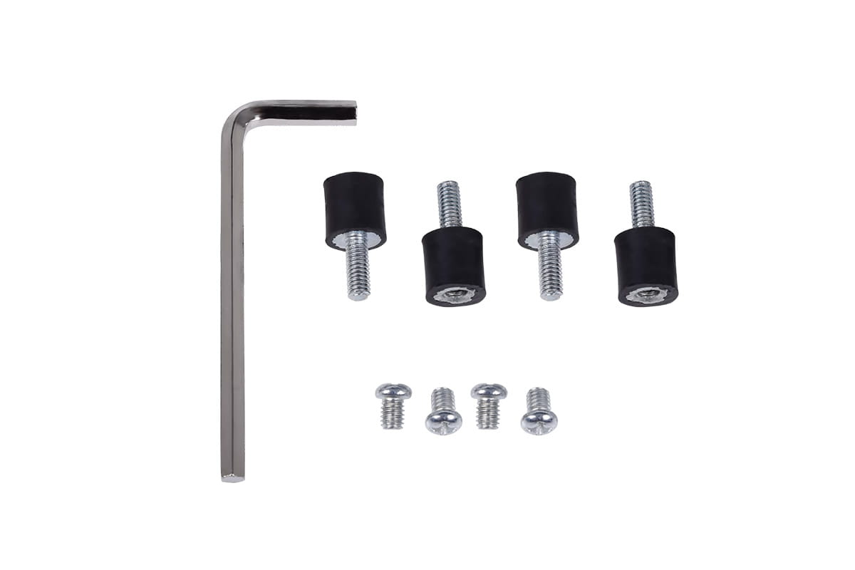 Ein weiteres Feature ist die mitgelieferte Entkopplungsmöglichkeit. Durch die speziellen M4 Schrauben kann in den Kopf der Schraube noch die mitgelieferte Entkopplung eingeschraubt werden welche wiederum mit dem Gehäuse verbunden wird.