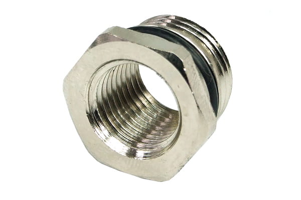 Mit dem G 1/4"-Adapter für die Eheim 1046/48 ist es möglich Anschlüsse mit G1/4" Außengewinde zu verwenden. Der Adapter wird einfach vorne in die Pumpe geschraubt und kann verwendet werden, wenn auf einen Ausgleichsbehälter verzichtet wird. Er besitzt eine O-Ring Abdichtung.(3/8" auf 1/4"- Adapter)