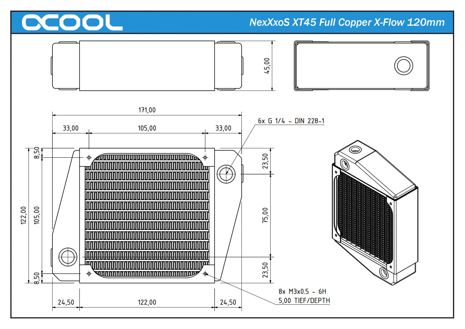 Alphacool NexXxoS XT45 Full Copper X-Flow 120mm Radiator