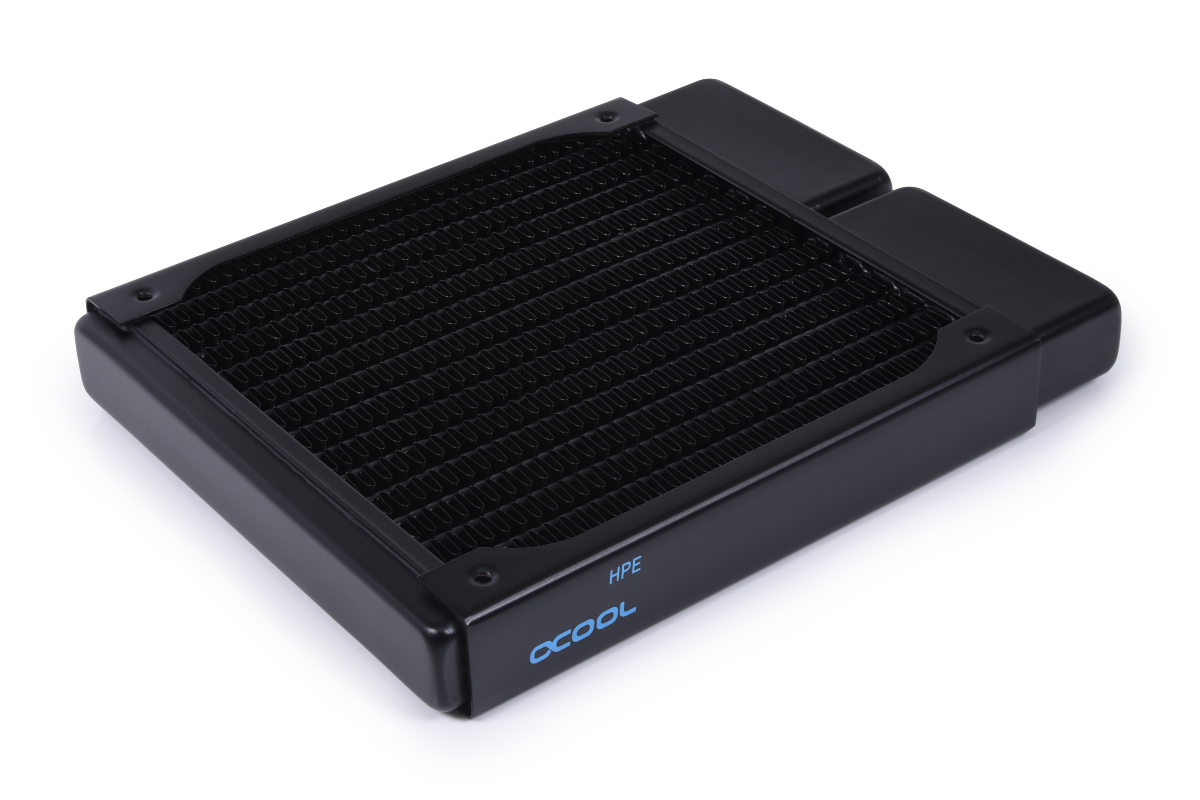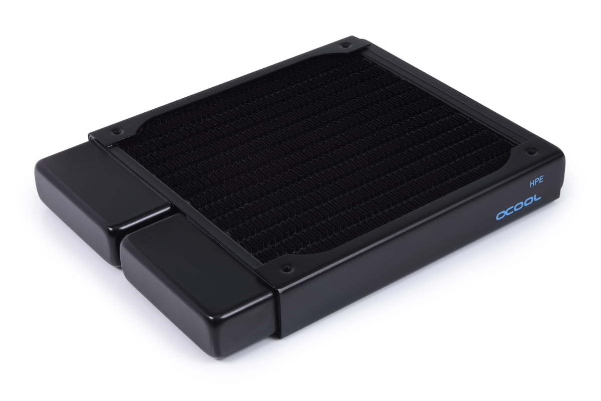 Der NexXxos Full Copper HPE Radiator verwendet die gleichen Materialien wie die bisherigen NexXxos Modelle, geht aber technisch einen Schritt weiter. Durch den verdichteten inneren Aufbau, konnte die Anzahl an Wasserkanälen und Kupferlamellen erhöht werden. Damit ist ein größeres Wasservolumen im direkten Kontakt mit den Kühlfinnen und die Wärmeübertragung wird enorm verbessert. Durch die höhere Anzahl der Finnenreihen und deren Verkürzung wird zudem die Kühlfläche wesentlich effizienter ausgenutzt. Vergleichstests mit dem herkömmlichen NexXxos Radiator haben ergeben, dass bei Verwendung des HPE Radiators eine Leistungssteigerung von 4,5K möglich ist. Bei höherer Umgebungstemperatur und höherer Drehzahl der Lüfter steigt der Leistungsabstand zu den normalen NexXxoS Radiatoren sogar progressiv an und erreicht eine mögliche Leistungssteigerung von bis zu 6K.