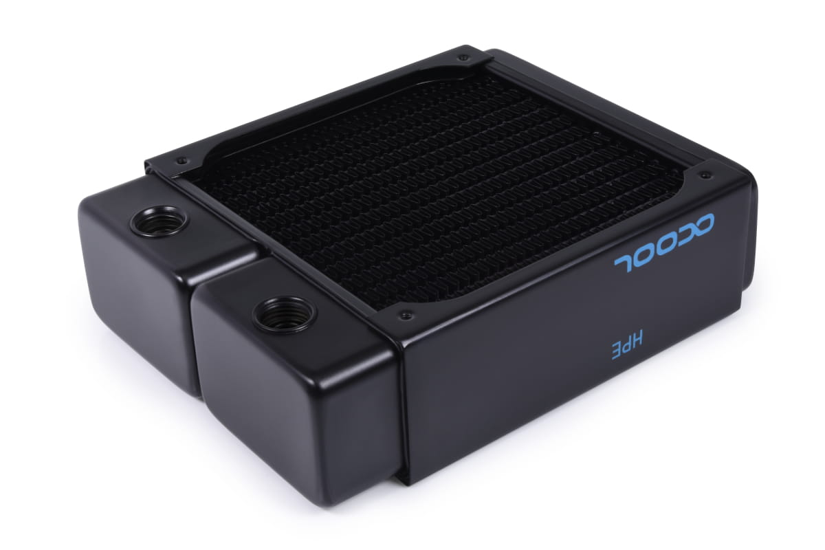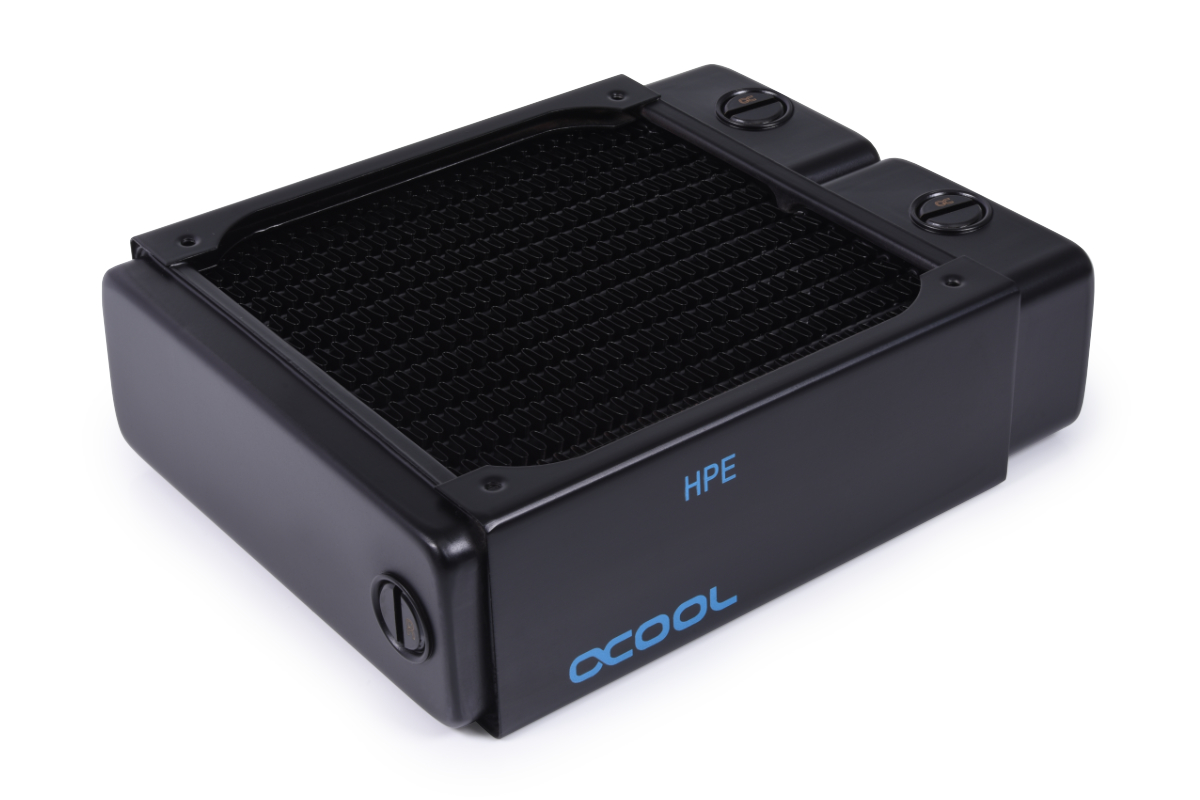 Der NexXxos Full Copper HPE Radiator verwendet die gleichen Materialien wie die bisherigen NexXxos Modelle, geht aber technisch einen Schritt weiter. Durch den verdichteten inneren Aufbau, konnte die Anzahl an Wasserkanälen und Kupferlamellen erhöht werden. Damit ist ein größeres Wasservolumen im direkten Kontakt mit den Kühlfinnen und die Wärmeübertragung wird enorm verbessert. Durch die höhere Anzahl der Finnenreihen und deren Verkürzung wird zudem die Kühlfläche wesentlich effizienter ausgenutzt. Vergleichstests* mit dem herkömmlichen NexXxos Radiator haben ergeben, dass bei Verwendung des HPE Radiators eine Leistungssteigerung von 4,5K möglich ist. Bei höherer Umgebungstemperatur und höherer Drehzahl der Lüfter steigt der Leistungsabstand zu den normalen NexXxoS Radiatoren sogar progressiv an und erreicht eine mögliche Leistungssteigerung von bis zu 6K.