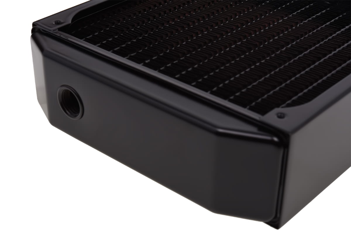 Die Anschlussmöglichkeiten bei den NexXxoS Radiatoren sind umfangreich. Während beim schmalen ST30 Radiator jeweils 2 Ein- und Auslässe vorhanden sind, bieten alle dickeren Radiatoren ab dem XT45 jeweils 3 Ein- und Auslässe im G ¼“ Format. Zusätzlich befindet sich an der hinteren Vorkammer noch ein G ¼“Anschluss zum Befüllen oder Entlüften. Dadurch haben Sie die Möglichkeit den Radiator in jeder gewünschten Position zu montieren.