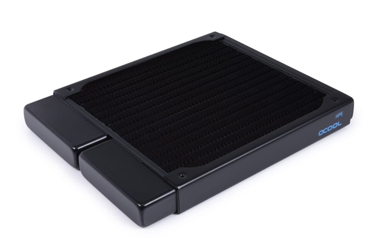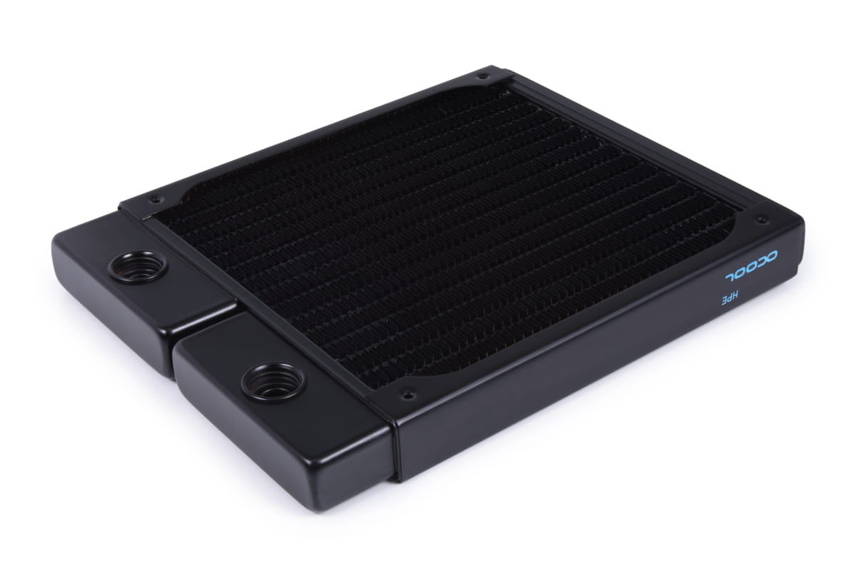 Der NexXxos Full Copper HPE Radiator verwendet die gleichen Materialien wie die bisherigen NexXxos Modelle, geht aber technisch einen Schritt weiter. Durch den verdichteten inneren Aufbau, konnte die Anzahl an Wasserkanälen und Kupferlamellen erhöht werden. Damit ist ein größeres Wasservolumen im direkten Kontakt mit den Kühlfinnen und die Wärmeübertragung wird enorm verbessert. Durch die höhere Anzahl der Finnenreihen und deren Verkürzung wird zudem die Kühlfläche wesentlich effizienter ausgenutzt. Vergleichstests mit dem herkömmlichen NexXxos Radiator haben ergeben, dass bei Verwendung des HPE Radiators eine Leistungssteigerung von 4,5K möglich ist. Bei höherer Umgebungstemperatur und höherer Drehzahl der Lüfter steigt der Leistungsabstand zu den normalen NexXxoS Radiatoren sogar progressiv an und erreicht eine mögliche Leistungssteigerung von bis zu 6K.