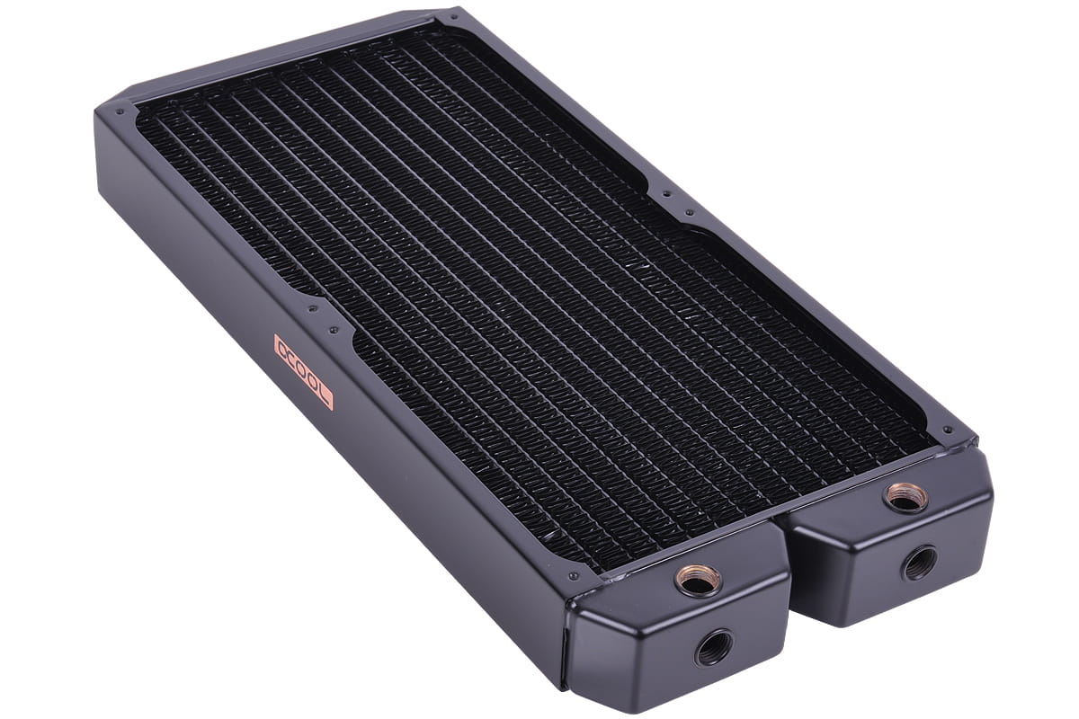 Alle Alphacool Radiatoren sind für den Silent Betrieb ausgelegt. Sie benötigen also keine Lüfter mit besonders hohem statischen Druck, um die gewünschte Performance zu erzielen, sondern können auf normale Lüfter mit niedriger Drehzahl setzen. Der Performanceverlust gegenüber speziellen Lüftern für Radiatoren ist dadurch geringfügig und kann normalerweise ignoriert werden. Wer natürlich die maximale Kühlleistung erreichen will und auf angepasste Lüfter für Radiatoren setzt, wird natürlich auch nicht enttäuscht. Die maximale Performance leidet nicht darunter. Dank des Kupfers und dem qualitativ hochwertigen Herstellungsverfahren erhalten Sie auch mit Hochleistungslüftern immer noch eine enorme Leistungssteigerung für Ihre wassergekühlten Komponenten.