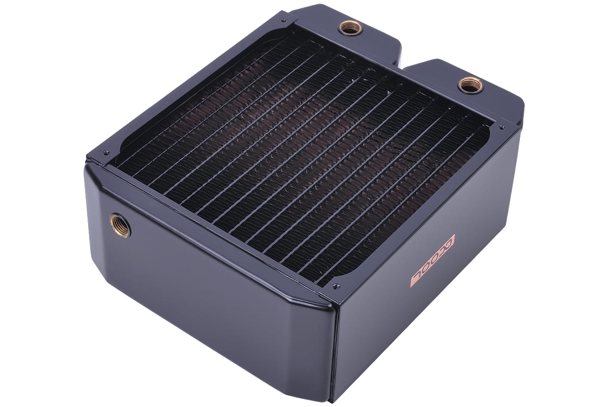 Der weltweit bekannte Hersteller Alphacool ist aktuell der einzige Hersteller weltweit der bei allen wasserführenden Teilen auf reines Kupfer setzt. Die Vorkammern, Wasserkanäle und die Finnen sind alle aus reinem Kupfer. Dadurch bieten Alphacool Radiatoren die höchste Wärmeleitfähigkeit, wodurch das Leistungslimit deutlich höher liegt als bei Aluminium Radiatoren. Kurz gesagt, die Kühlleistung ist schlichtweg höher, wenn man sehr viel Wärme abführen möchte. Kupfer ist im Wasserkühlungsbereich seit Jahren die beste Wahl bei den Materialien.