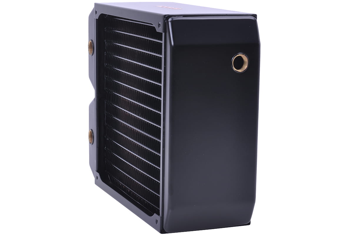Alle Alphacool Radiatoren sind für den Silent Betrieb ausgelegt. Sie benötigen also keine Lüfter mit besonders hohem statischen Druck, um die gewünschte Performance zu erzielen, sondern können auf normale Lüfter mit niedriger Drehzahl setzen. Der Performanceverlust gegenüber speziellen Lüftern für Radiatoren ist dadurch geringfügig und kann normalerweise ignoriert werden. Wer natürlich die maximale Kühlleistung erreichen will und auf angepasste Lüfter für Radiatoren setzt, wird natürlich auch nicht enttäuscht. Die maximale Performance leidet nicht darunter. Dank des Kupfers und dem qualitativ hochwertigen Herstellungsverfahren erhalten Sie auch mit Hochleistungslüftern immer noch eine enorme Leistungssteigerung für Ihre wassergekühlten Komponenten.
