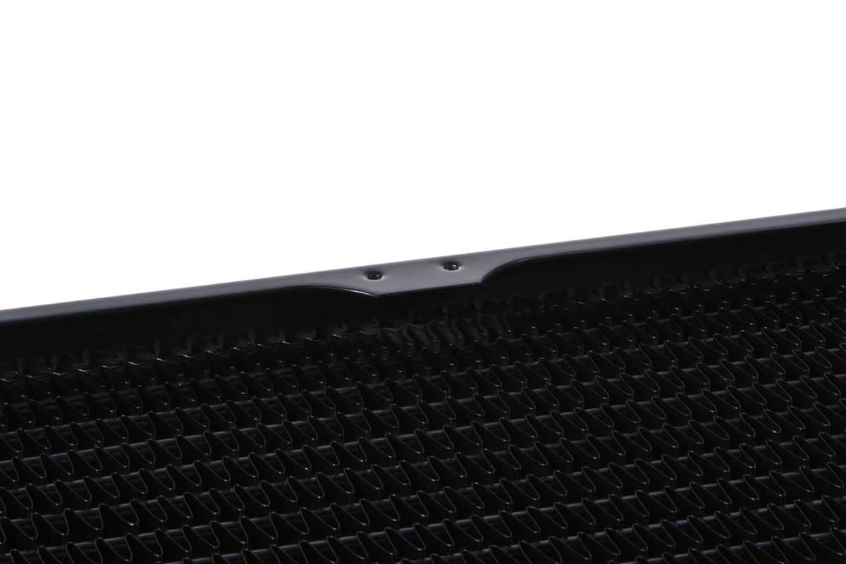 Um die Performance eines Radiators zu maximieren, greift Alphacool tief in die Trickkiste. Den Anfang macht Kupfer. Mit einer Wärmeleitfähigkeit von 400 W/(mK) bei Kupfer im Vergleich zu 236 W/(mK) bei Aluminium, steht der Sieger fest. Dazu kommt die spezielle Finnendichte. Alphacool ist eines der ältesten Unternehmen im Bereich Wasserkühlung und hat unzählige Labortests durchgeführt. Das Ergebnis, speziell für derart große Radiatoren, ist ein Finnenabstand von 12 FPI. Dadurch wird der Luftstrom relativ geringfügig behindert, da die Luft auch mit sehr geringem Druck durchgleiten kann. Dadurch ist der Radiator prädestiniert für Lüfter mit geringer Drehzahl. Die Kühlleistung leidet darunter aber nicht, im Gegenteil. Um den Luftstrom optimal zu nutzen, haben alle Kühlfinnen kleine Flaps. Hierbei handelt es sich um winzige Flügel, die den Luftstrom in die gewünschte Richtung leiten. Bei den Radiatoren sind diese kaum 1 mm hoch, sorgen aber dennoch für kontrollierte Luftverwirbelungen, um die Kühlleistung zu steigern und die Strömungsgeräusche zu minimieren.