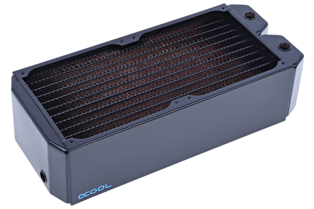 Der weltweit bekannte Hersteller Alphacool ist aktuell der einzige Hersteller weltweit der bei allen wasserführenden Teilen auf reines Kupfer setzt. Die Vorkammern, Wasserkanäle und die Finnen sind alle aus reinem Kupfer. Dadurch bieten Alphacool Radiatoren die höchste Wärmeleitfähigkeit, wodurch das Leistungslimit deutlich höher liegt als bei Aluminium Radiatoren. Kurz gesagt, die Kühlleistung ist schlichtweg höher, wenn man sehr viel Wärme abführen möchte. Kupfer ist im Wasserkühlungsbereich seit Jahren die beste Wahl bei den Materialien.