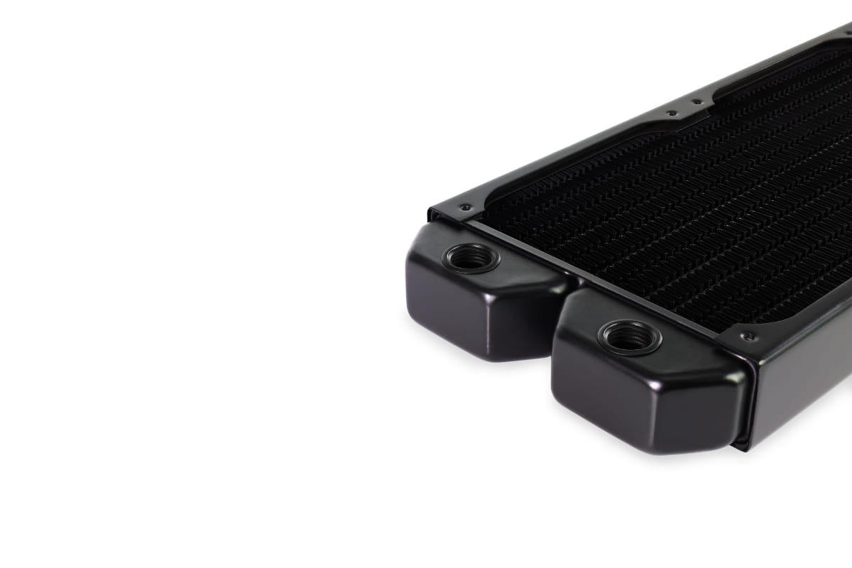 Die Anschlussmöglichkeiten bei den NexXxoS Radiatoren sind umfangreich. Während beim schmalen ST30 Radiator jeweils 2 Ein- und Auslässe vorhanden sind, bieten alle dickeren Radiatoren ab dem XT45 jeweils 3 Ein- und Auslässe im G ¼“ Format. Zusätzlich befindet sich an der hinteren Vorkammer noch ein G ¼“Anschluss zum Befüllen oder Entlüften. Dadurch haben Sie die Möglichkeit den Radiator in jeder gewünschten Position zu montieren.