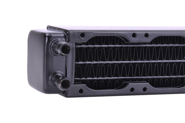 Der weltweit bekannte Hersteller Alphacool ist aktuell der einzige Hersteller weltweit der bei allen wasserführenden Teilen auf reines Kupfer setzt. Die Vorkammern, Wasserkanäle und die Finnen sind alle aus reinem Kupfer. Dadurch bieten Alphacool Radiatoren die höchste Wärmeleitfähigkeit, wodurch das Leistungslimit deutlich höher liegt als bei Aluminium Radiatoren. Kurz gesagt, die Kühlleistung ist schlichtweg höher, wenn man sehr viel Wärme abführen möchte. Kupfer ist im Wasserkühlungsbereich seit Jahren die beste Wahl bei den Materialien.