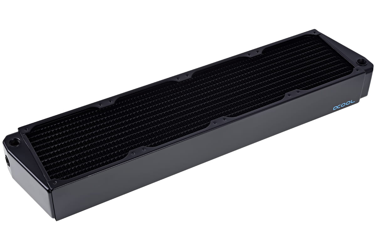 Der weltweit bekannte Hersteller Alphacool ist aktuell der einzige Hersteller weltweit der bei allen wasserführenden Teilen auf reines Kupfer setzt. Die Vorkammern, Wasserkanäle und die Finnen sind alle aus reinem Kupfer. Dadurch bieten Alphacool Radiatoren die höchste Wärmeleitfähigkeit, wodurch das Leistungslimit deutlich höher liegt als bei Aluminium Radiatoren. Kurz gesagt, die Kühlleistung ist schlichtweg höher, wenn man sehr viel Wärme abführen möchte. Kupfer ist im Wasserkühlungsbereich seit Jahren die beste Wahl bei den Materialien.