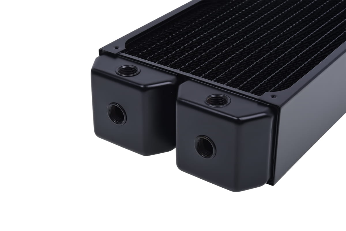 Die Anschlussmöglichkeiten bei den NexXxoS Radiatoren sind umfangreich. Während beim schmalen ST30 Radiator jeweils 2 Ein- und Auslässe vorhanden sind, bieten alle dickeren Radiatoren ab dem XT45 jeweils 3 Ein- und Auslässe im G ¼“ Format. Zusätzlich befindet sich an der hinteren Vorkammer noch ein G ¼“Anschluss zum Befüllen oder Entlüften. Dadurch haben Sie die Möglichkeit den Radiator in jeder gewünschten Position zu montieren.