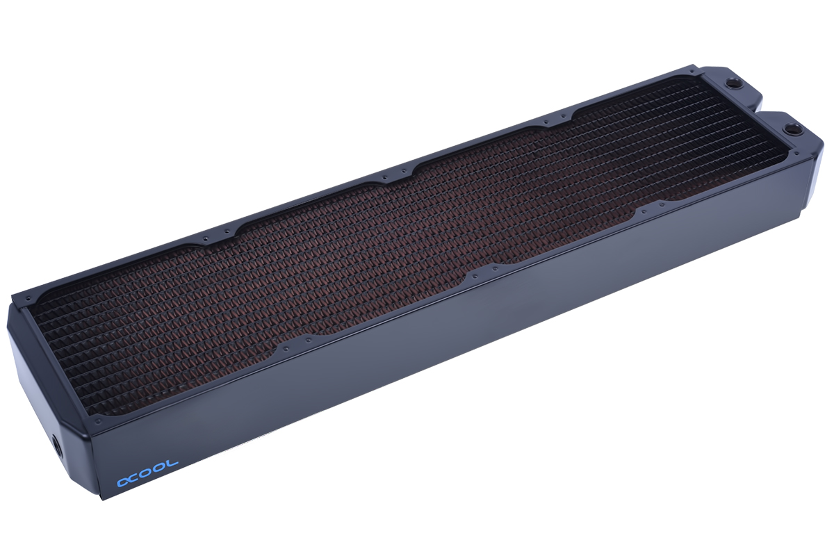 Der weltweit bekannte Hersteller Alphacool ist aktuell der einzige Hersteller weltweit der bei allen wasserführenden Teilen auf reines Kupfer setzt. Die Vorkammern, Wasserkanäle und die Finnen sind alle aus reinem Kupfer. Dadurch bieten Alphacool Radiatoren die höchste Wärmeleitfähigkeit, wodurch das Leistungslimit deutlich höher liegt als bei Aluminium Radiatoren. Kurz gesagt, die Kühlleistung ist schlichtweg höher, wenn man sehr viel Wärme abführen möchte. Kupfer ist im Wasserkühlungsbereich seit Jahren die beste Wahl bei den Materialien.