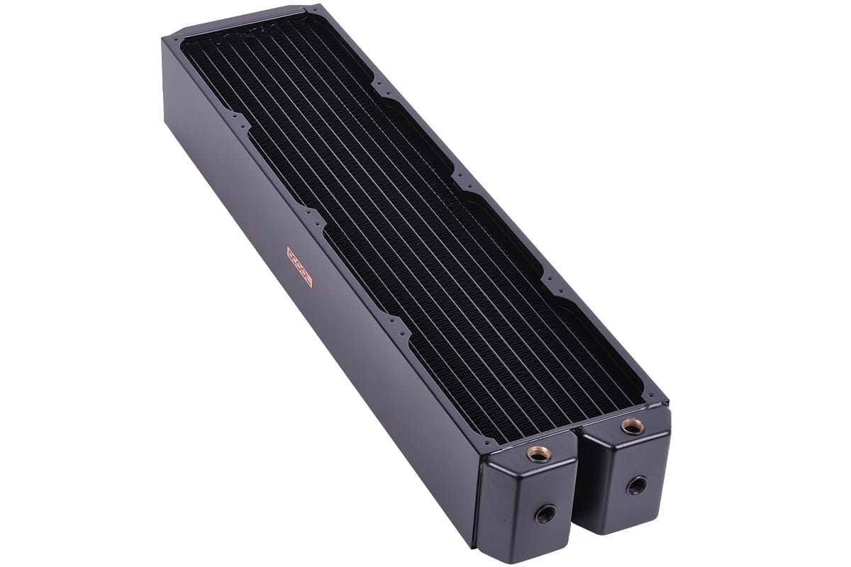 Der weltweit bekannte Hersteller Alphacool ist aktuell der einzige Hersteller weltweit der bei allen wasserführenden Teilen auf reines Kupfer setzt. Die Vorkammern, Wasserkanäle und die Finnen sind alle aus reinem Kupfer. Dadurch bieten Alphacool Radiatoren die höchste Wärmeleitfähigkeit, wodurch das Leistungslimit deutlich höher liegt als bei Aluminium Radiatoren. Kurz gesagt, die Kühlleistung ist schlichtweg höher, wenn man sehr viel Wärme abführen möchte. Kupfer ist im Wasserkühlungsbereich seit Jahren die beste Wahl bei den Materialien.