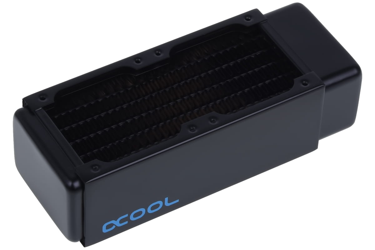 Der weltweit bekannte Hersteller Alphacool ist aktuell der einzige Hersteller weltweit der bei allen wasserführenden Teilen auf reines Kupfer setzt. Die Vorkammern, Wasserkanäle und die Finnen sind alle aus reinem Kupfer. Dadurch bieten Alphacool Radiatoren die höchste Wärmeleitfähigkeit, wodurch das Leistungslimit deutlich höher liegt als bei Aluminium Radiatoren. Kurz gesagt, die Kühlleistung ist schlichtweg höher, wenn man sehr viel Wärme abführen möchte. Kupfer ist im Wasserkühlungsbereich seit Jahren die beste Wahl bei den Materialien.
