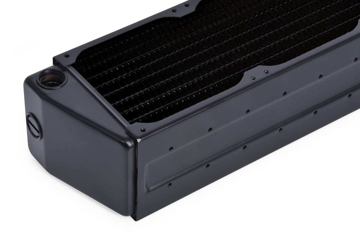 Die HPE Radiatoren basieren auf der NexXxoS Serie. Doch was ist neu? Die HPE Variante verfügt über zusätzliche Kühlkanäle sowie eine sehr hohe Finnendichte. Aufgrund des technischen Aufbaus erhöht sich die Kühlleistung deutlich, ohne dabei den Wasserfluss innerhalb des Radiators restriktiv zu beeinflussen. Stattet man den Radiator mit Lüftern beidseitig im Push/Pull-Betrieb aus, ist nachweislich eine deutliche Senkung der Wassertemperatur im Vergleich zu Standard Radiatoren möglich.