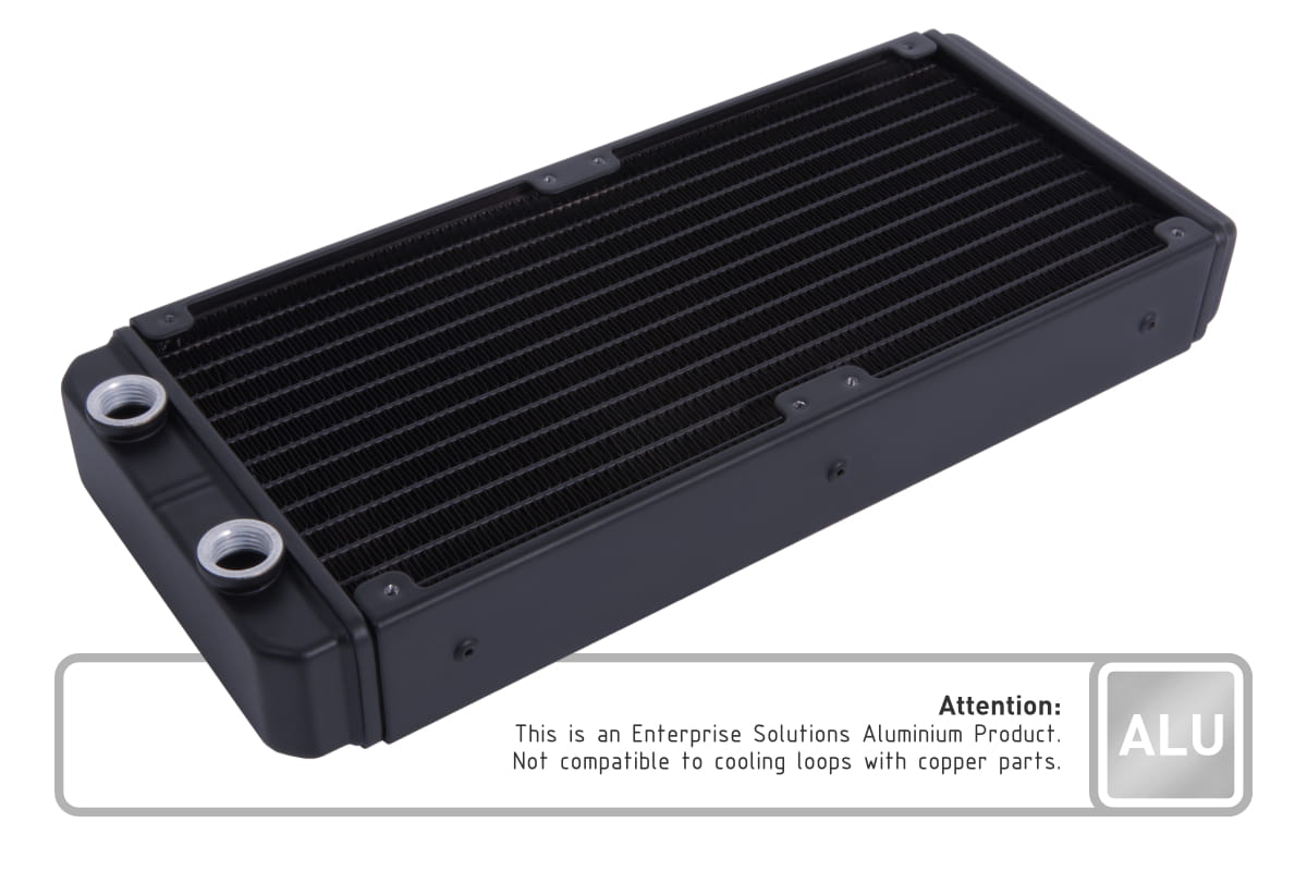 Dies ist ein Enterprise Solutions Aluminium Produkt. Die ES Aluminium Radiatoren dürfen nicht gemeinsam mit Wasserkühlungsprodukten aus Kupfer (Kühler, Anschlüsse, etc.) verwendet werden. Eine gemeinsame Verwendung von Aluminium- & Kupferbauteilen wird schwere Schäden am Wasserkreislauf verursachen.