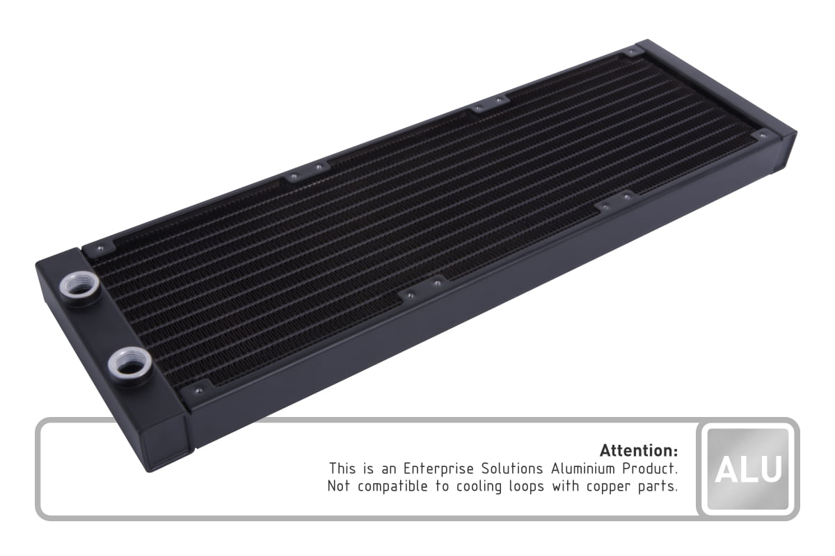 Dies ist ein Enterprise Solutions Aluminium Produkt. Die ES Aluminium Radiatoren dürfen nicht gemeinsam mit Wasserkühlungsprodukten aus Kupfer (Kühler, Anschlüsse, etc.) verwendet werden. Eine gemeinsame Verwendung von Aluminium- & Kupferbauteilen wird schwere Schäden am Wasserkreislauf verursachen.