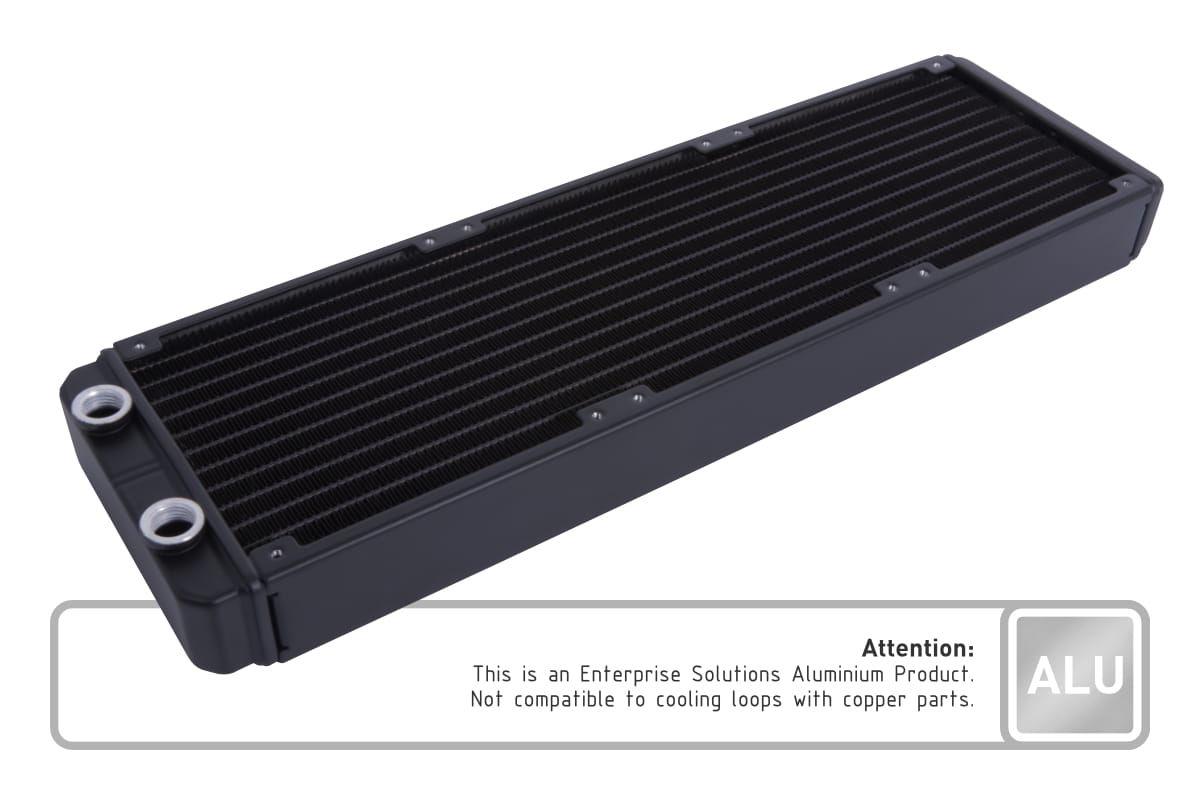 Dies ist ein Enterprise Solutions Aluminium Produkt. Die ES Aluminium Radiatoren dürfen nicht gemeinsam mit Wasserkühlungsprodukten aus Kupfer (Kühler, Anschlüsse, etc.) verwendet werden. Eine gemeinsame Verwendung von Aluminium- & Kupferbauteilen wird schwere Schäden am Wasserkreislauf verursachen.