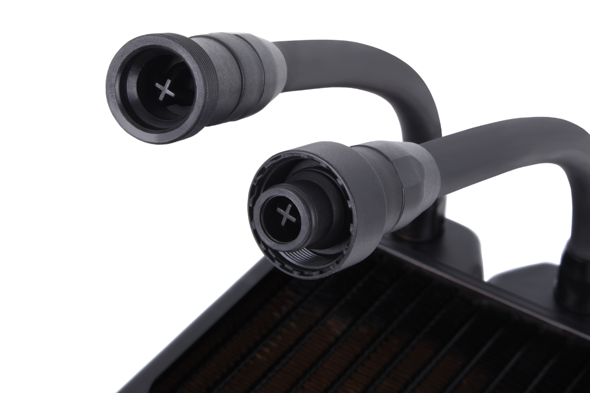 Alle neuen AIO Systeme von Alphacool setzen auf TPV Schläuche. Dieser ist widerstandfähiger und knickfester als alle handelsüblichen PVC Schläuche. TPV Schläuche vertragen Arbeitstemperaturen von -50 bis +155° C und kommen daher vorwiegend in der Industrie zum Einsatz. TPV Schläuche verzichten zudem auf Weichmacher, welcher mit der Zeit aus den Schläuchen herausgespült wird. Dadurch werden PVC Schläuche hart und porös. Außerdem verändern sie ihre Farbe in ein trübes gelb. Das kann mit den schwarzen TPV Schläuchen natürlich nicht passieren. Alphacool Enterprise Solutions verwendet ausschließlich TPV Schläuche, aufgrund ihrer Eigenschaften, für Server und Workstation Kunden.