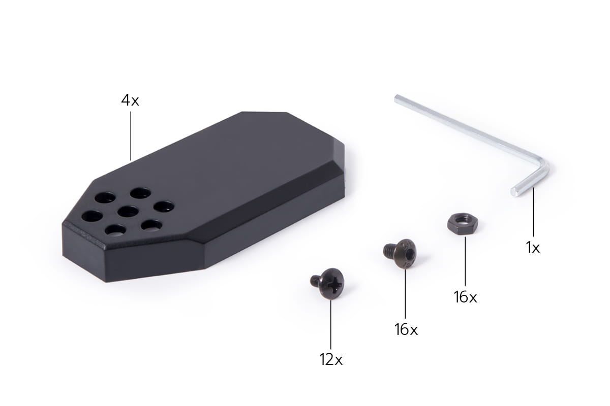 Die 4 Kunststoff-Füße können an vielen verschiedenen Position am Boden der Lüfterbox befestigt werden. Somit bietet die Lüfterbox immer einen sicheren Stand.