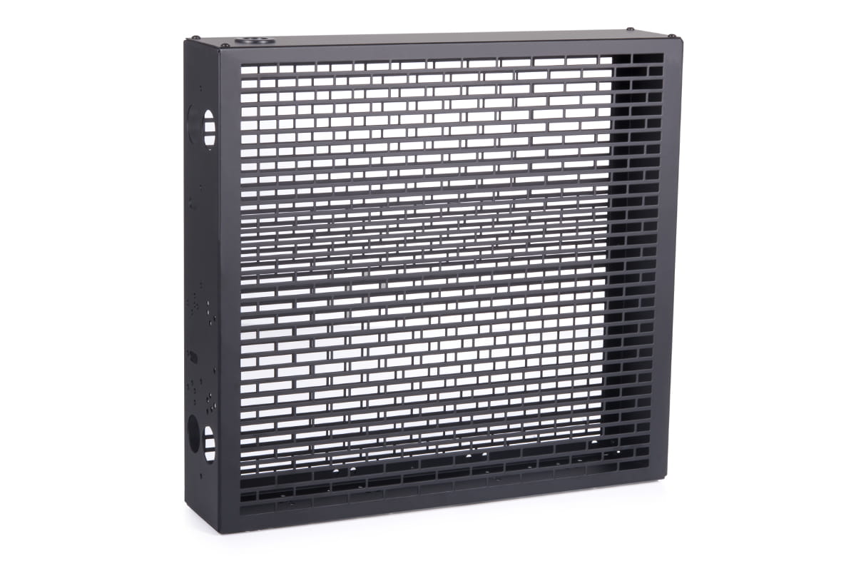 Die Alphacool Lüfterbox ist ideal, um einen NexXxoS Nova 1080mm Radiator inklusive 120mm Lüftern extern aufzustellen. Die im Lieferumfang enthaltenen Kunststoff Standfüße lassen sich leicht an der Lüfterbox montieren, die dann problemlos auf dem Boden, Tisch oder an einen anderen beliebigen Ort aufgestellt werden kann. Die Gitterstruktur an Vor– und Rückseite der Box schützt die Lüfter sowie die Kühlfinnen des Radiators vor Beschädigung durch Eintreten von Fremdkörpern oder Ähnlichem.