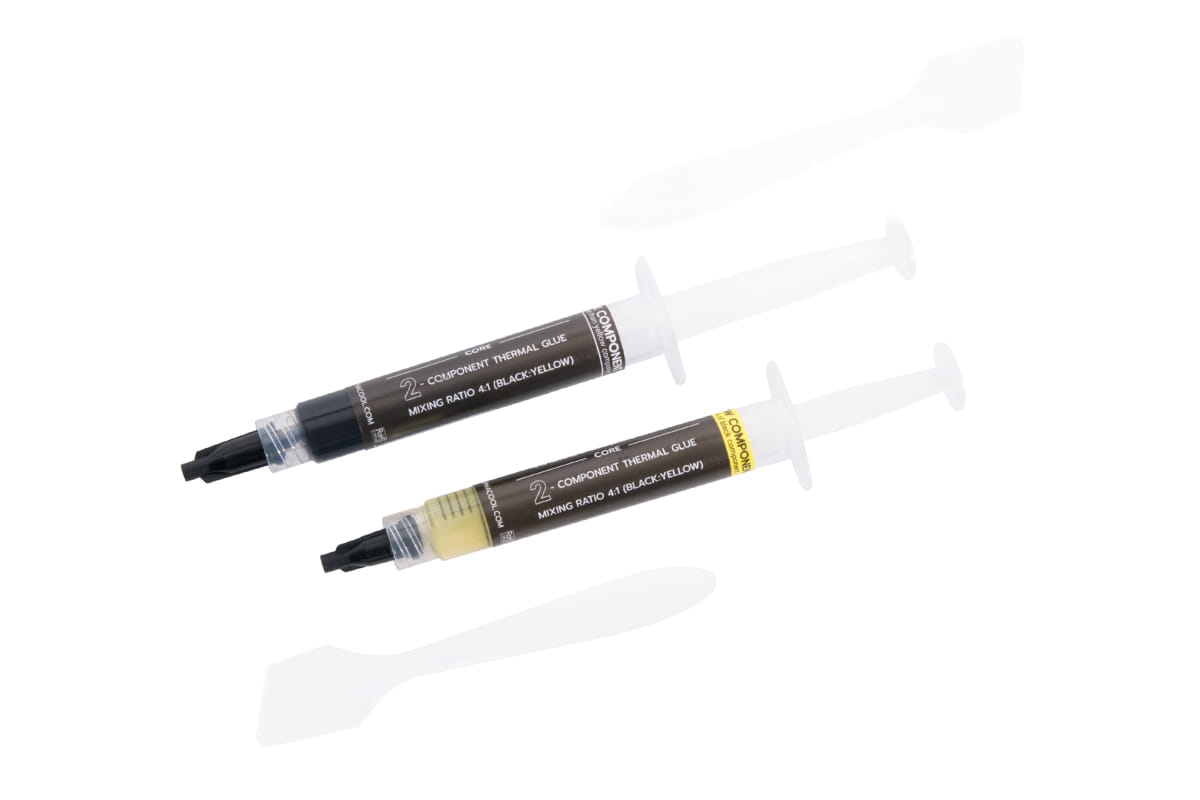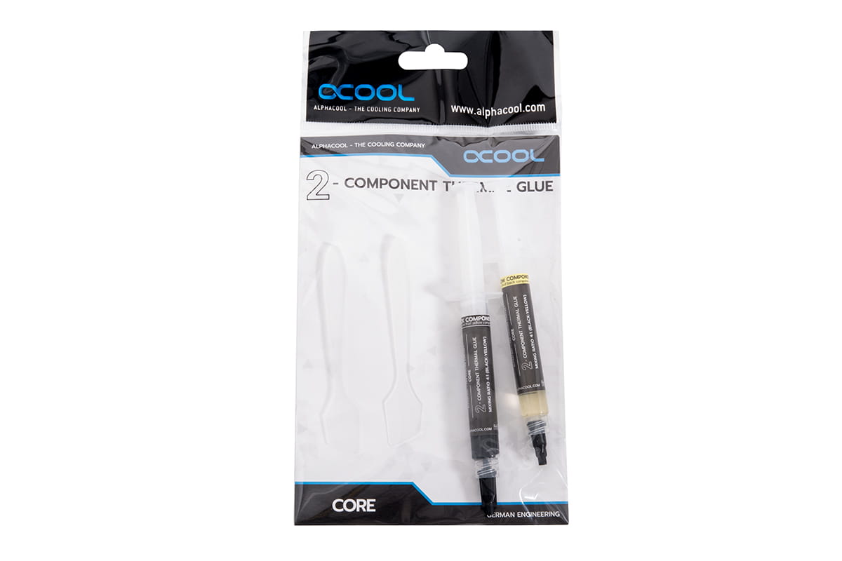 Alphacool 2-Komponenten Thermalkleber ist perfekt geeignet für die Montage von Kühlern auf Mainboard-Spannungswandlern. Der 2-Komponenten Kleber auf Epoxidbasis ist die optimale Wahl, wenn Kühler auf CPU oder GPU von Einplatinen-Computern (Raspberry PI, ODROID, Arduino, Cubieboard etc.) befestigt werden müssen. Das Einsatzgebiet ist so weitläufig, dass selbst Kühler auf elektronischen Bauteilen bei Endstufen oder RC-Fahrzeugen zuverlässig und stabil verklebt werden können.