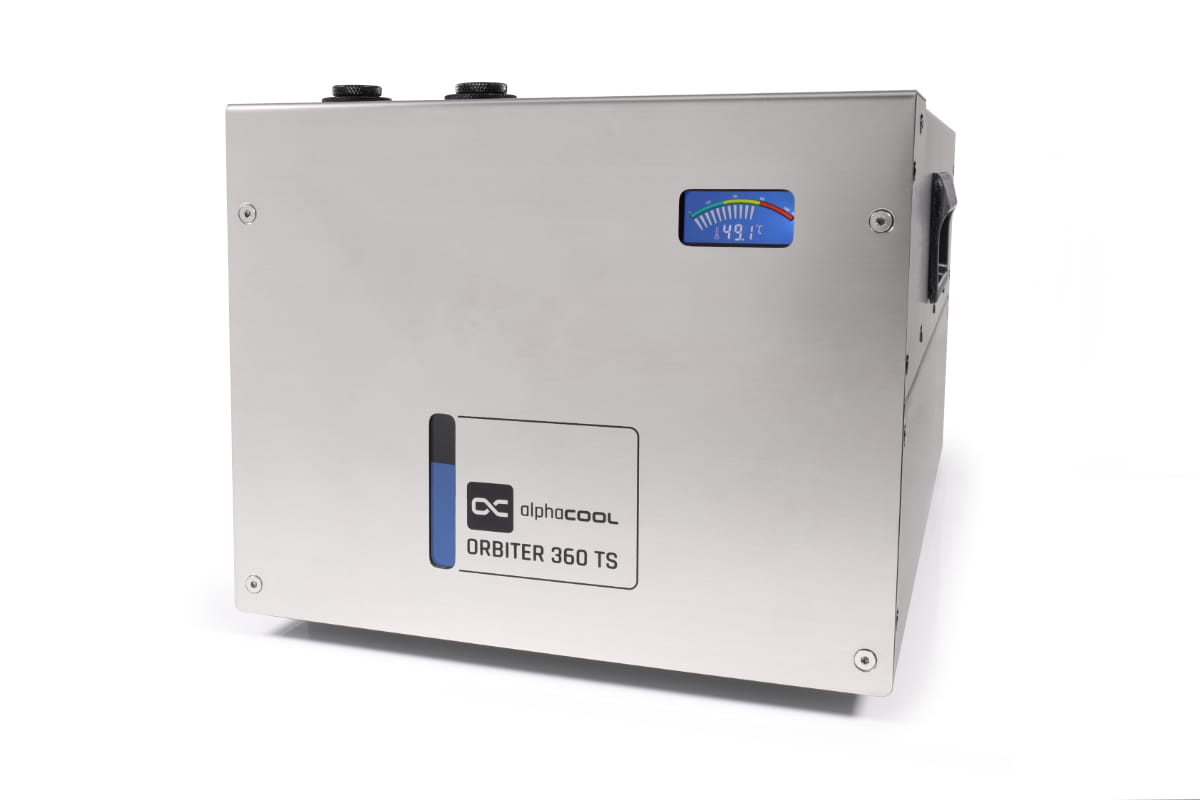 Der Alphacool ES Orbiter 360 TS ist ein externes Kühlsystem für industrielle Anwendungsbereiche. Er ist kompakt und leistungsstark. Die Kühlung erfolgt über zwei HPE-30 NexXxoS Full Copper Radiatoren mit insgesamt 360mm. Der ES Orbiter 360 TS kann Abwärme von bis zu 1300 Watt* abführen.